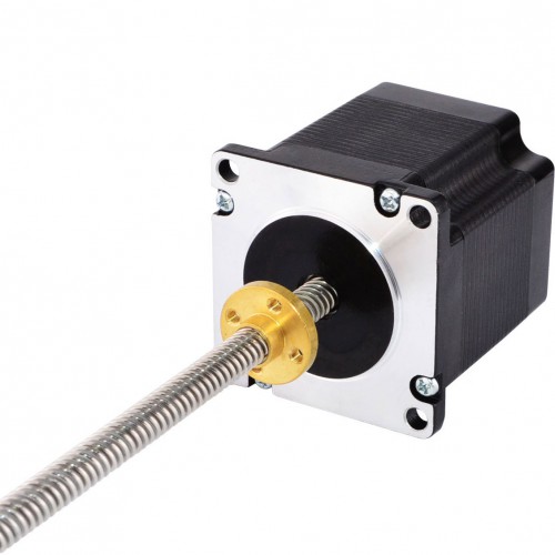 このモデルは、外部リニアアクチュエータNema 23と呼ばれる経済的なリニアステッピングモータで、モータ部分は56mmの1.8度の3A Nema 23ステッピングモータです。 150mm Tr8x8ねじ棒と一体化して、真鍮ねじナットがねじ棒に沿って移動します。