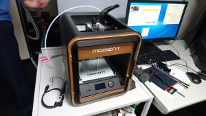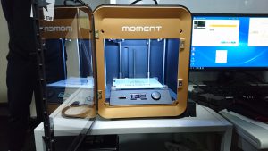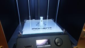 マットブラックとゴールドのボディに高級感が漂います。韓国のMOMENTという会社の「MOMENT S」という3Dプリンターです(Nema 17ステッピングモーター)。